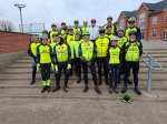 Vi mødtes på Springvandspladsen i Vester Hassing, til præsentation af vores nye vindveste/jakker over for vores sponsor Sparekassen Danmark, Fonden Hals.